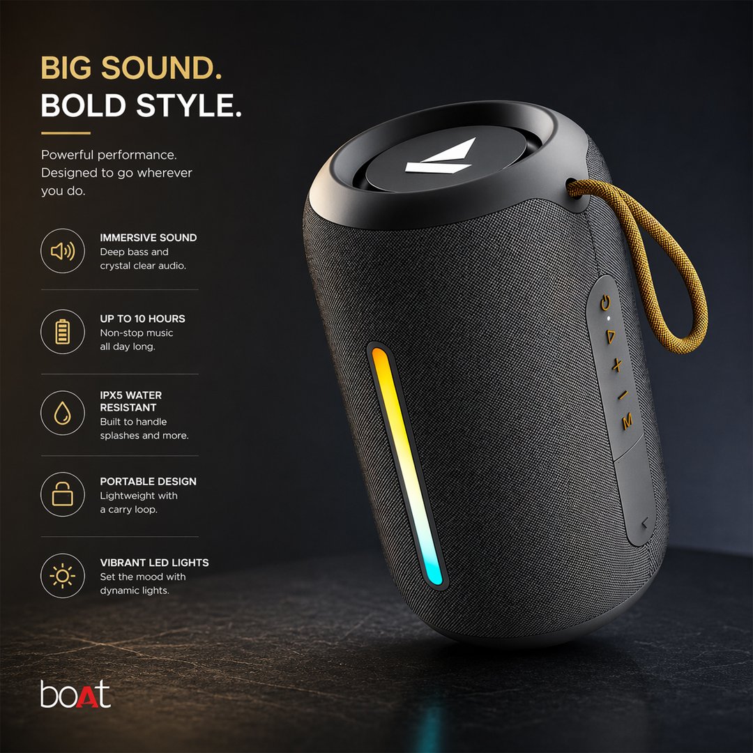 Packed with boAt Signature Sound, the Stone 352 Pro ensures every beat hits right, whether you’re indoors or outdoors. With its dynamic drivers and enhanced bass output, it’s perfect for parties, travel, and everyday listening.