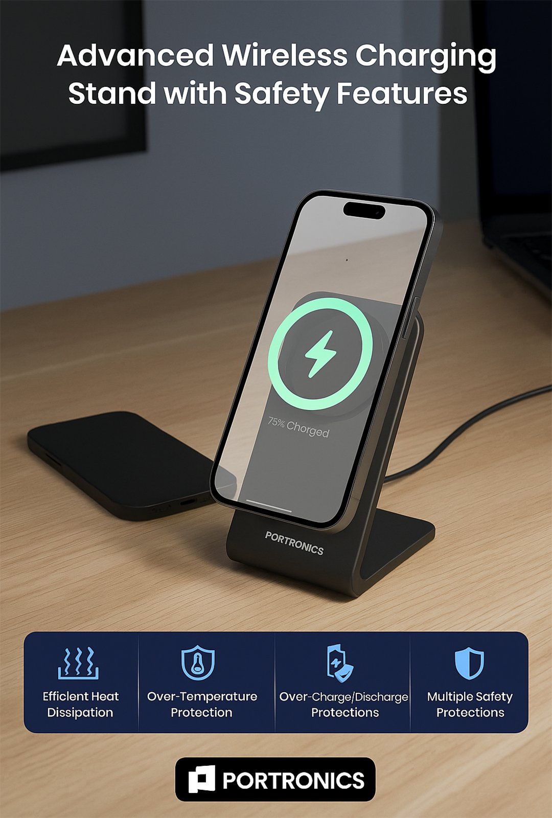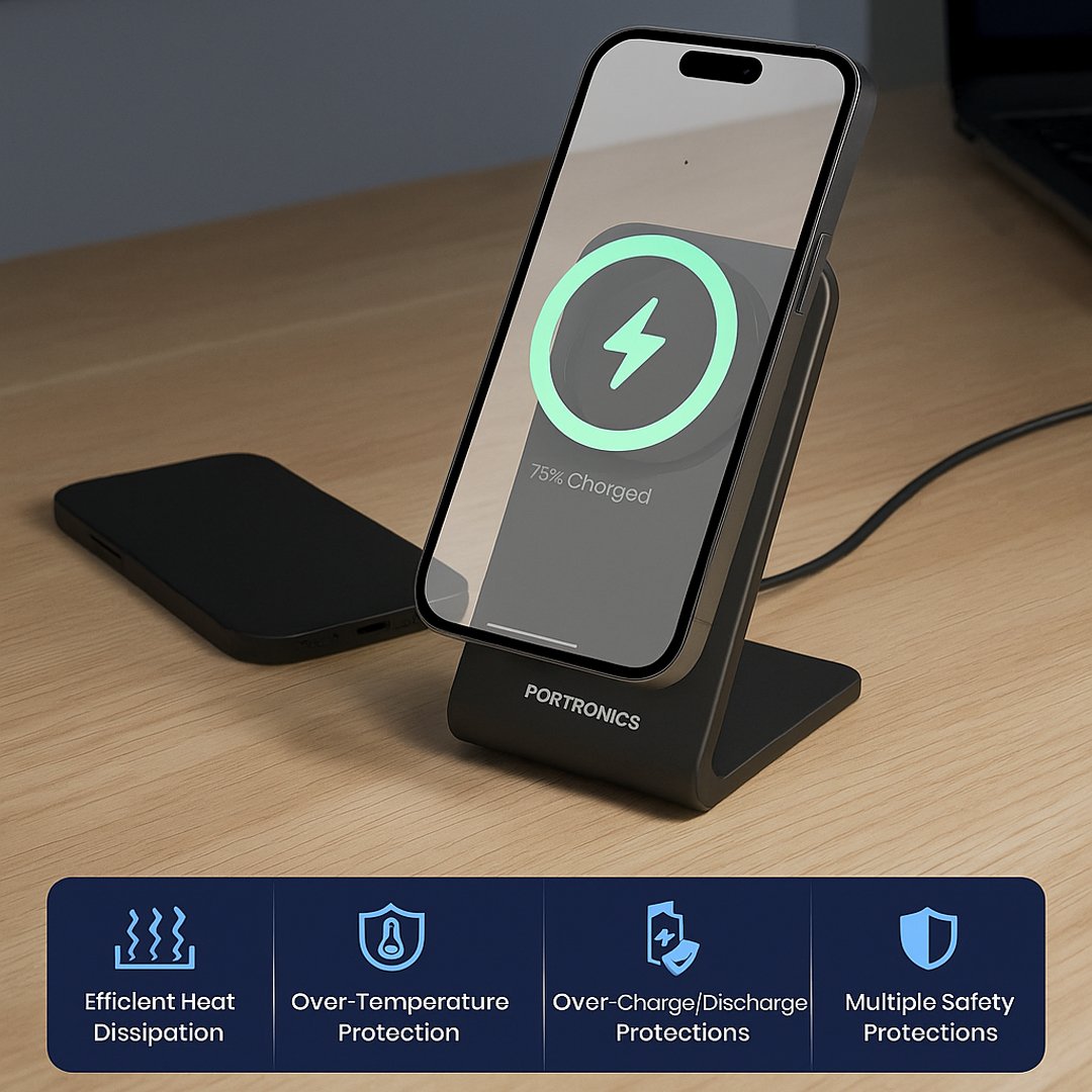 Compact, sleek, and functional — the Portronics Flux 2 is the perfect wireless stand for effortless charging and hands-free use, whether you’re working, streaming, or relaxing.