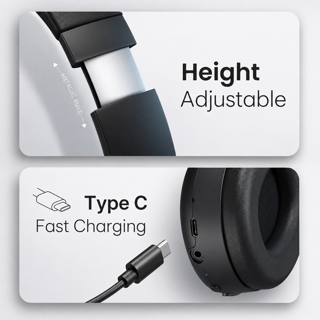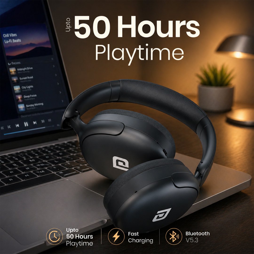 Enjoy extended usage with up to 50 hours of battery life, ensuring uninterrupted entertainment throughout the day. With Type-C fast charging, you can quickly power up your headphones—just 10 minutes of charging gives you hours of playback.