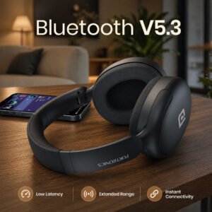 Upgrade your listening experience with the Muffs M5 Wireless Over-Ear Headphones, designed to deliver powerful sound, advanced features, and all-day comfort. Built with the latest Bluetooth 5.3 technology, these headphones ensure faster pairing, stable connections, and seamless performance across all your devices.
