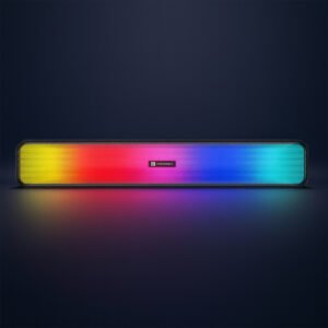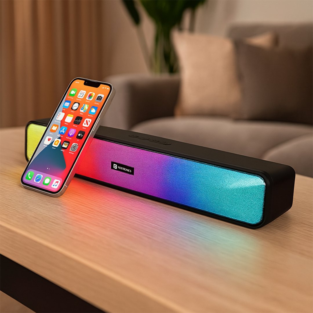 Portronics Radian is a stylish 16W Bluetooth soundbar with dual full-range drivers, LED accent lighting, and multiple connectivity options. Enjoy powerful sound, long battery life, and a sleek design that fits perfectly into your home or workspace.