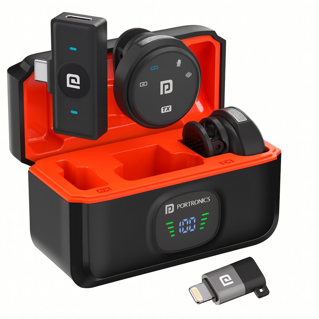 Portronics VlogMate 3 Wireless Microphone | Upto 40 Hrs Battery Life | 30M Audio Reception | LED Battery Display
